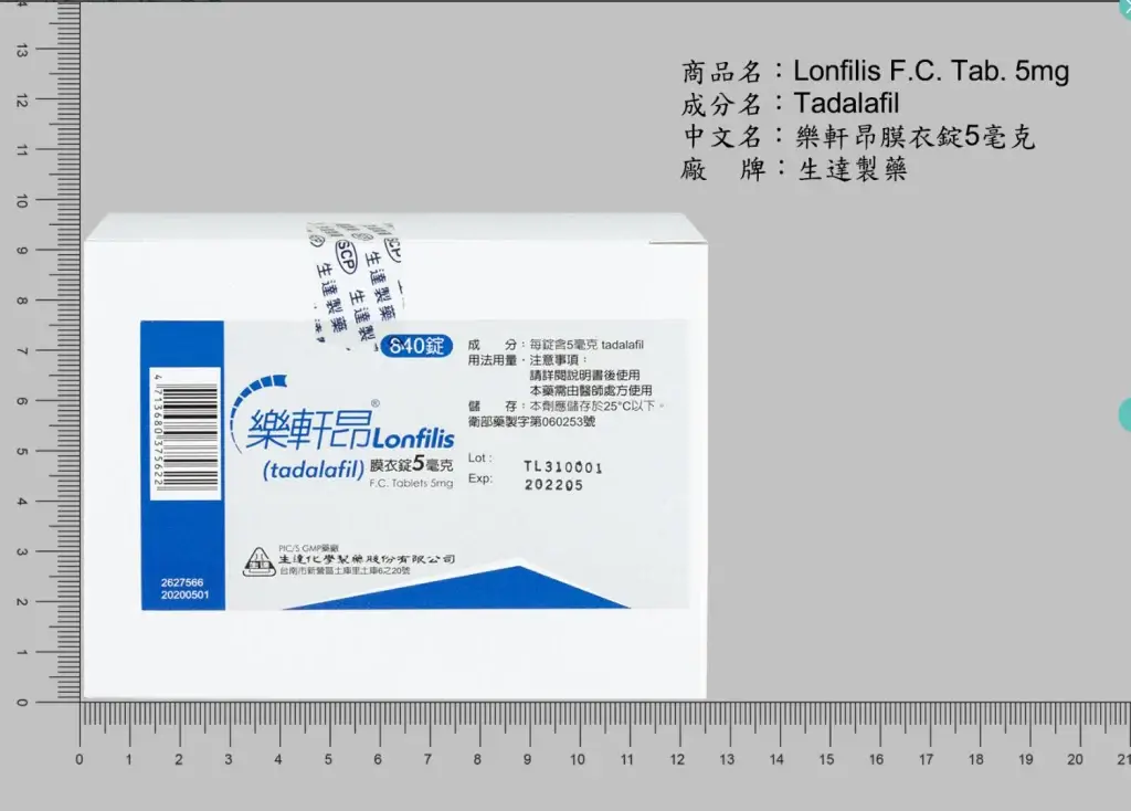 • 每顆劑量:5mg Tadalafil