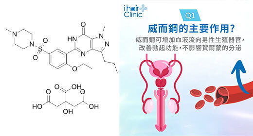 作用原理:威而鋼(Viagra,學名:西地那非 Sildenafil)屬於 PDE5 抑制劑。它能抑制磷酸二酯酶-5(PDE5)酶的活性,延長 一氧化氮(NO)-cGMP 訊號 的作用,使陰莖平滑肌放鬆、血管擴張,讓血流更容易進入海綿體,幫助勃起並維持硬度。